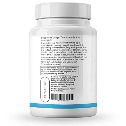 -. Feature : MAINTAIN OVERALL GOOD HEALTH & INCREASE ENERGY: by facilitating the transfer of fatty acid groups into the mitochondrial membrane for cellular energy production. / DISCOUNT PACKAGES AVAILABLE: ~~ BUY 2, GET 10% OFF! ~~ BUY 3, GET 15% OFF ~~ BUY 6, GET 25% OFF / NATURALLY OCCURRING: amino acid found in red meat and other animal food sources, but supplementation helps you to obtain optimal levels. / VEGETARIAN FORM: our L-Carnitine is the purest form, clinically tested, and non-animal sourced. / RECEIVE BENEFIT OF FULL POTENCY: Pure L-Carnitine normally attracts water which can cause it to deteriorate rapidly. We use a tartrate form to help ensure that this product maintains stability and full potency.