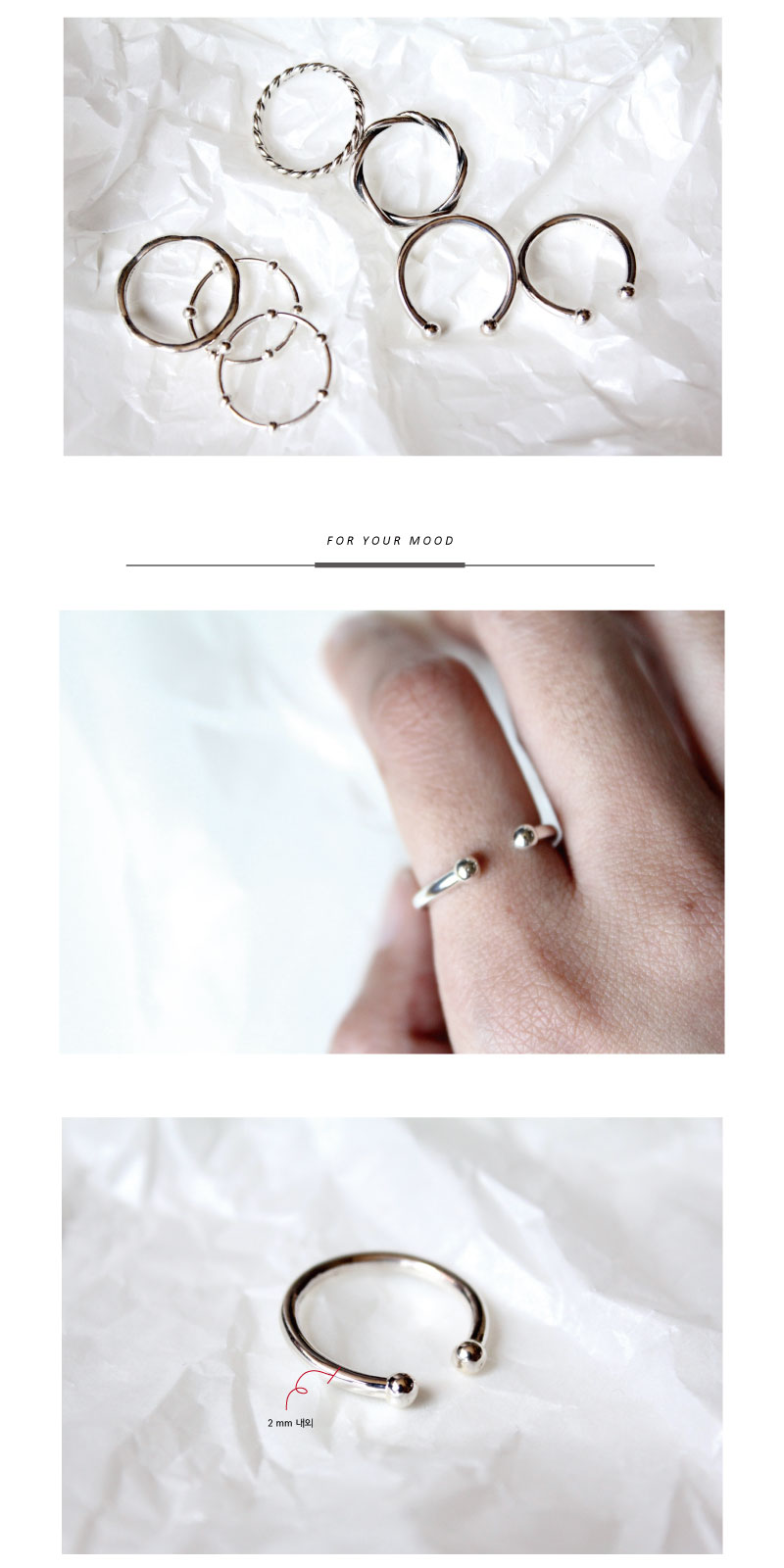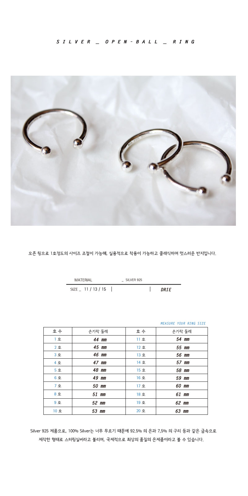 오픈 링으로 1호 정도의 사이즈 조절이 가능해 실용적이며, 클래식한 디자인으로 스타일에 구애받지 않고 데일리로 착용하시기에 좋습니다.