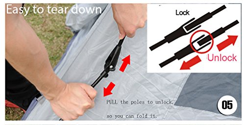 Quick Setup - With a set up time of under a minute, this is the perfect instant push up dome tent and is ideally sized for 2 adults, teens or children. The tent poles easily snap together or pull apart to help build or break down the tent at a moments notice.