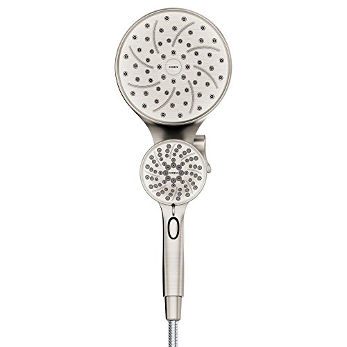 Rain Shower Head features 1 full flow function, while the Hand Held Shower Head features 6 settings plus a pause button feature to cut off the flow.