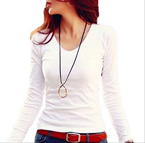 -. Title : [ファッションデイズ] fashiondays トップス 長袖 Tシャツ ロンT ストレッチ インナー シャツ コットン カットソー レディース ファッション 着痩せ 無地 Vネック 白 L