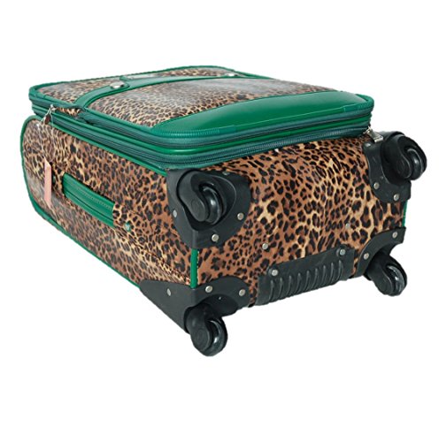 -. Brand : Adrienne Vittadini -. Color : Multi -. Department : womens -. EAN : 0768410152312 -. Feature : Front zippered pocket that's large enough to hold small computer or tablet device / Four wheel spinner system for easy rolling / Fully lined polyester interior features adjustable valet straps, mesh zippered pocket and shoe pockets / Telescoping handle features ergonomic design and a push-button locking mechanism / 21" x 14" x 9" (expandable) -. Model : 20QX -. ProductGroup : Apparel -. ProductTypeName : LAGE -. Size : 20-Inch -. Title : Adrienne Vittadini Women's 21-Inch P.R.Inted Leopard Spinner UP.R.Ight (Green/Leopard) -. UPC : 768410152312