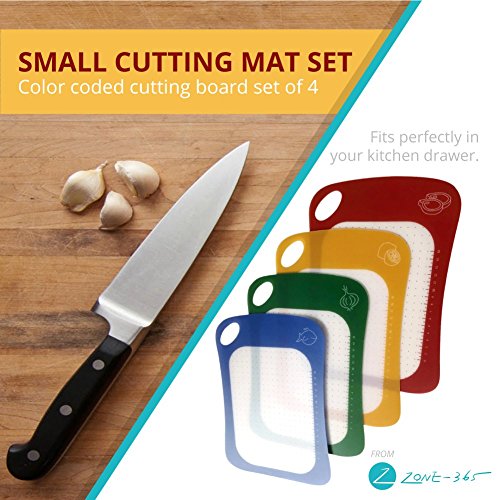 - SELF HEALING FLEXIBLE CUTTING MATS for the PAMPERED CHEF: Zone – 365 flexible cutting board set measures 12 inches x 8 inches. This cutting board Set stores away perfectly in Your kitchen drawers. These cutting boards are color coded for safety and easy organization. So get to chopping!!!