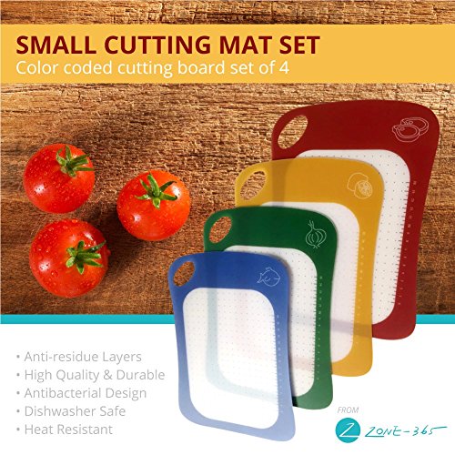 - SET OF 4 COLOR CODED CUTTING BOARDS: The cutting mat set is dishwasher safe and can be used as circuit, crafts, hobby, DIY cutting mats. Save Your work surfaces with these handy to use flexible cutting boards..