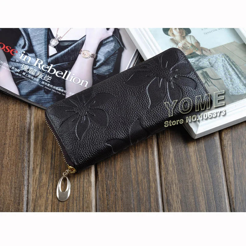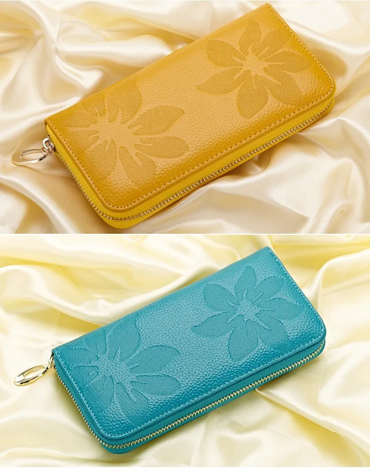 Women Wallets Fashion Flower Print Genuine Leather Wallets Women Clutch Wallets Lady Vintage Clutch Bag Coin Purse Women 60017MM