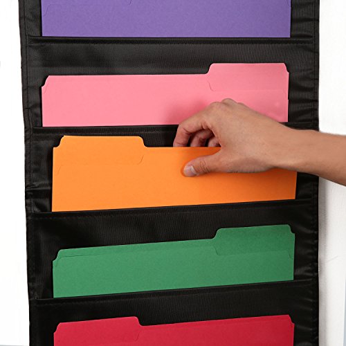 Hanging File Folders Pocket Chart Cascading Organizer [Black],10 Letter Size Pockets, Office, Homework, Recipes, Mail and More; Wall Mount or Door or Cubicle Hanging for Home, Office and School Use