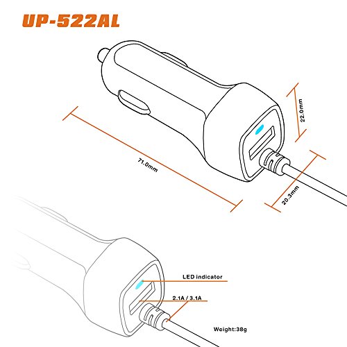 - Apply: this is a quick car charger, 2.1A output with 1A output for additional USB ports;