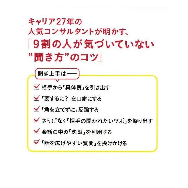 【商品説明】 定価(税込み):1,404円 値引き:10% OFF 「この人は信頼できる」そう思わせる“聞き方”がある。キャリア27年の人気コンサルタントが明かす、「9割の人が気づいていない“聞き方”のコツ」。 バーゲンブック 新品 特価 格安 ビジネス 経済 スキル 人気 |