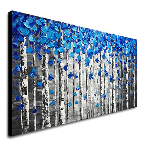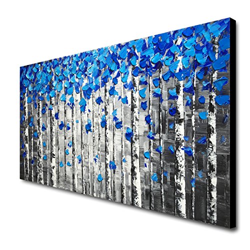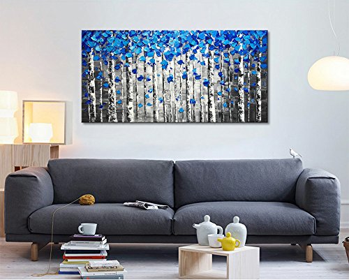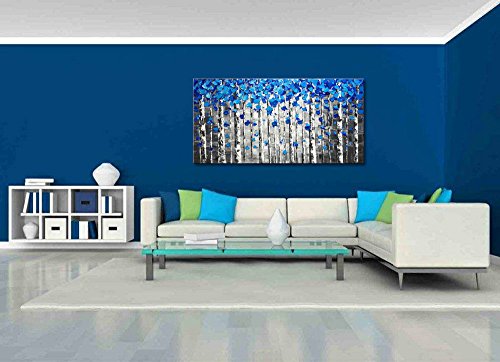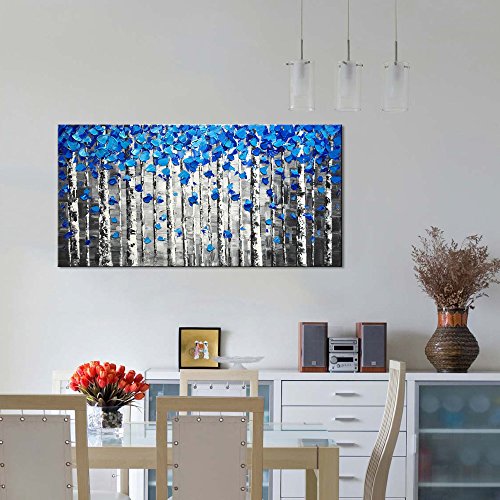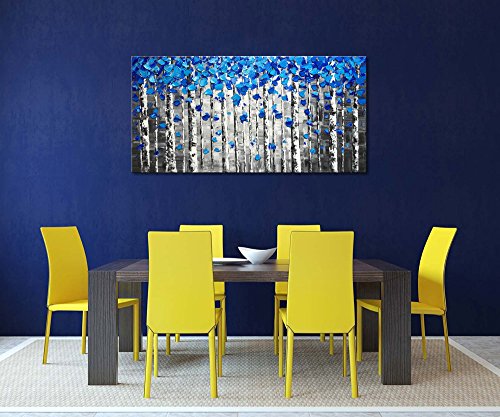 Hand Painted blue tree oil painting on canvas by our professional artists. This is handmade abstract canvas wall art, it is not a canvas print. This textured artwork is suitable for living room, bedroom, kitchen, office, Hotel, dining room, bathroom, bar etc.