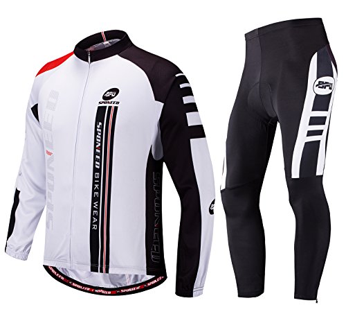 Sponeed Long Sleeve Bike Jersey Pants Padded Road Bike Shirt Jacket M White