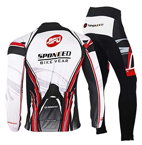 Cycling Jersey Long Sleeve,Sponeed Mens Bike Jersey and Pants Bicycle Outdoor Asia M/US S White-red