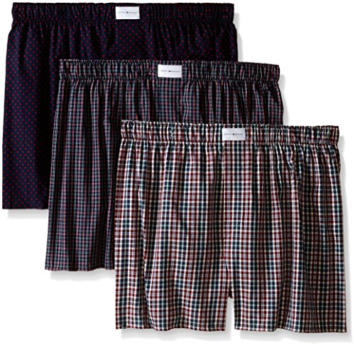 Tommy Hilfiger Men's Underwear 3 Pack Cotton Classics Woven Boxers, Multi, Medium