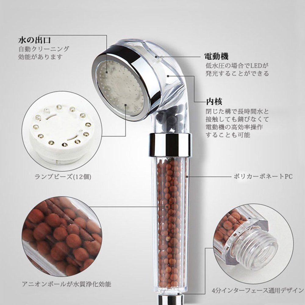 LED shower head, anion ball shower, chlorine removal cartridge, deodorant, antibacterial, purified water saving function,