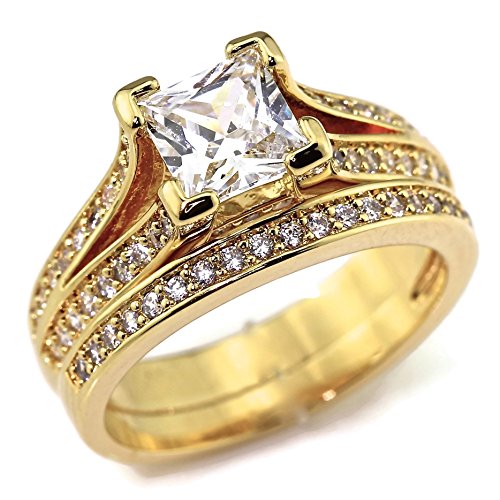 -. Binding : Jewelry -. Brand : My Jewelry Passion -. Department : womens -. Feature : MATERIAL: Highest quality AAA+ cubic zirconia stones. White gold, yellow gold or rose gold plated solid copper base (not alloy) for a high luster finish. Anti-tarnish and nickel-free. We are committed to providing you the highest standard materials and craftsmanship. The stones on this wedding set are handset by master craftsmen. / SPECIFICATIONS: Center stone measures 6 (around .75 carat). Width of band on engagement ring is around 4mm. Wedding band width is 2mm. Width of both rings together: 6mm. / APPLICATION: Comes with a FREE velvet pouch. This wedding set is a perfect set to wear for every day use, wear for traveling or to give as a gift for your loved one. -. Label : RB3090 -. Manufacturer : RB3090 -. Model : RB3090 -. MPN : RB3090 -. PartNumber : RB3090 -. ProductGroup : Jewelry -. ProductTypeName : FASHIONRING -. Publisher : RB3090 -. Studio : RB3090 -. Title : Platinum or Gold Plated .75 CT P.R.Incess Cut Cubic Zirconia CZ Engagement Wedding Ring Set