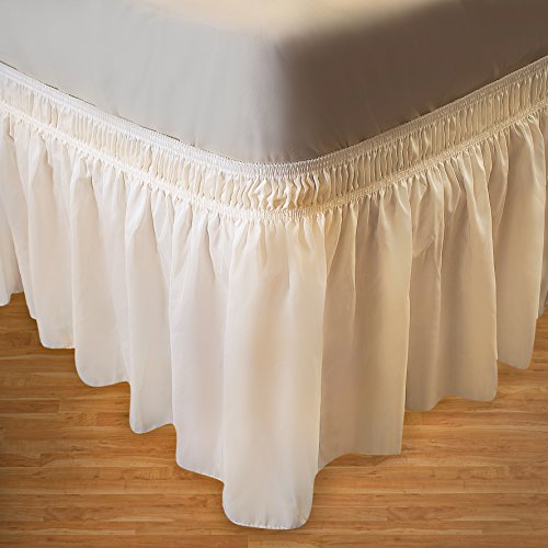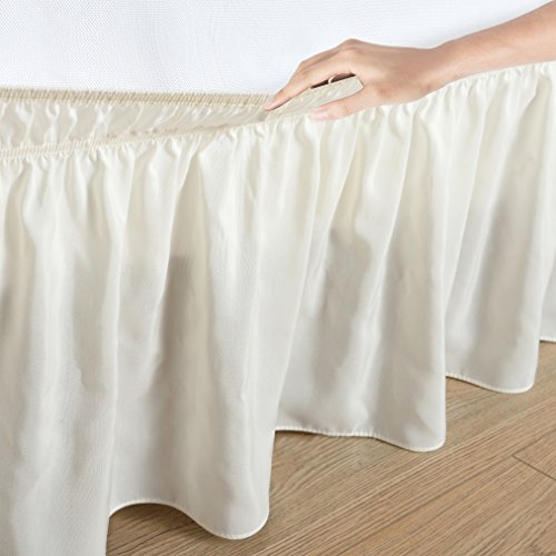 Wrap Around Bed Skirt Elastic Dust Ruffle Easy Fit Wrinkle and Fade Resistant Fabric Solid Color Ivory Queen/King By Flora Home