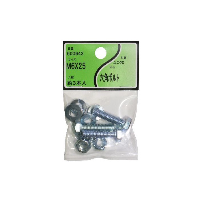 원본상품명: ユタカ産業 ユニクロ 六角ボルト 6x25 約3本