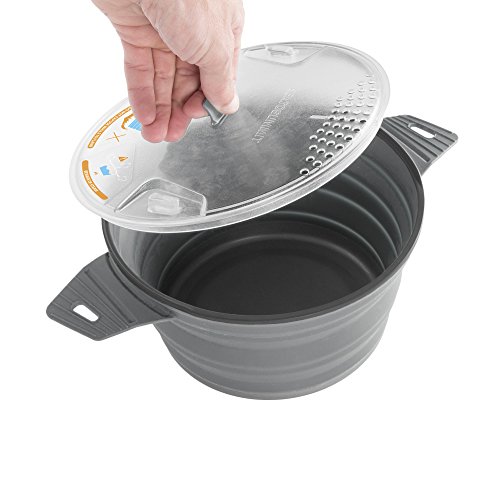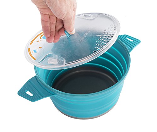 Studio : Sea to Summit Publisher : Sea to Summit Binding : Sports Product Description Cooking pots can be the most bulky and awkward items to pack in your bag. The X-Pot is a collapsible, fully featured cooking pot that combines the heat-distribution of aluminum with the flexibility of silicone. A hard anodized aluminum base allows a fast boil time and the tall silicone walls are excellent for stirring. The X-Pot Large has a 94.5 oz./2.8L volume which is perfect for cooking a meal for two campers. 0