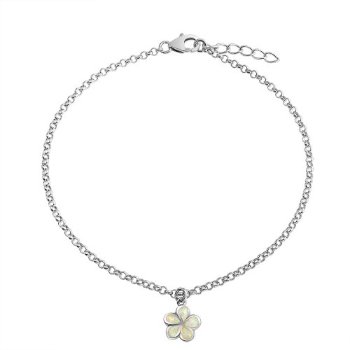 -. Title : Bling Jewelry Synthetic White Opal Inlay Plumeria Flower Anklet Ankle Bracelet 925 Silver Rhodium Plated