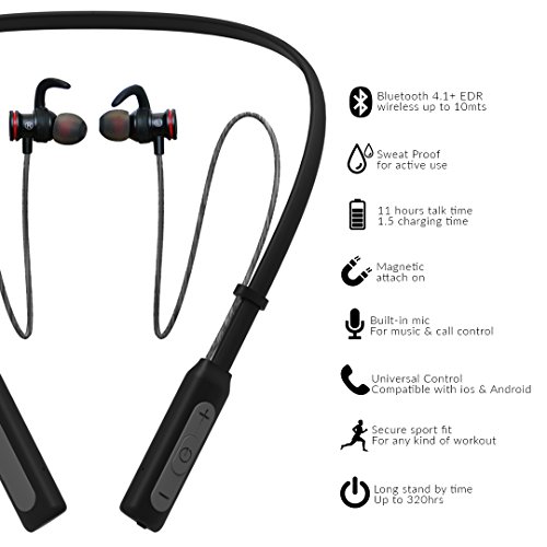 -. Feature : BLUETOOTH 4.1 TECHNOLOGY - Provides stable pairing with your bluetooth enabled device. Compatible with most of smart cellphones and other Bluetooth enabled devices. Pairing is just easily and quickly connected with a simple switch button. / LIGHTWEIGHT, FLEXIBLE and COMFORTABLE -- The headset weights 50 gr and is portable and can be carried around with you anywhere you wish to do. Enjoy extended comfort with padded earpads. / EASY and CONVENIENT TO USE - You can play, skip and pause music, control volume and pick up calls. Get the same quality of sound with wireless earphones as you can with those that are wired. / LONG BATTERY LIFE - Powerful rechargeable battery provides up to 11 hours of continuous talking, up to 10 hours of music time, and 320 hours of standby with a single charge. / RISK FREE - With a LIFETIME WARRANTY, we are committed to our 100% customer satisfaction so if you find that you are not "5-Star Happy" with us or our products then please contact us and we will do whatever it takes further assist you