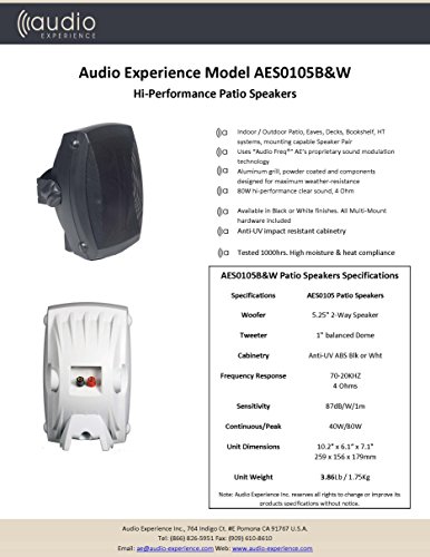 -. Title : Audio Experience AES0105W Weatherproof Multi Patio Speakers 80W, 5.25" 2-Way Woofer Speaker and 1" Balance Dome Tweeter, White, Pair