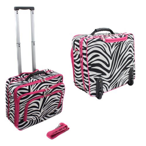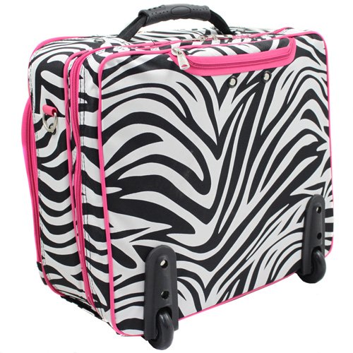 -. Binding : Electronics -. Brand : All-Seasons -. Color : Pink Zebra -. Department : Lage -. EAN : 0857519201325 -. Feature : 600D heavy duty polyester with dual gusset design and fully padded main compartment / Adjustable and removable shoulder strap, velcro straps and back compartment with fan file / In line skate wheels and telescopic handle / Computer Sleeve Dimensions: 12" H x 3" W x 16" L - Fits most 17" laptops / Dimensions: 13.5" H x 7" W x 17" L - 6 lb -. Label : All-Seasons -. Manufacturer : All-Seasons -. Model : 813102-163F -. MPN : 813102-163F -. NumberOfItems : 1 -. PackageQuantity : 1 -. PartNumber : 813102-163F -. ProductGroup : PC Accessory -. ProductTypeName : CARRYING_CASE_OR_BAG -. Publisher : All-Seasons -. Size : 16w x 13h x 7d -. Studio : All-Seasons -. Title : Laptop Case -. UPC : 857519201325