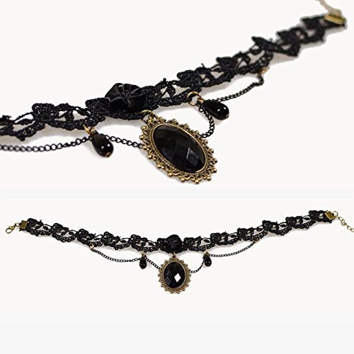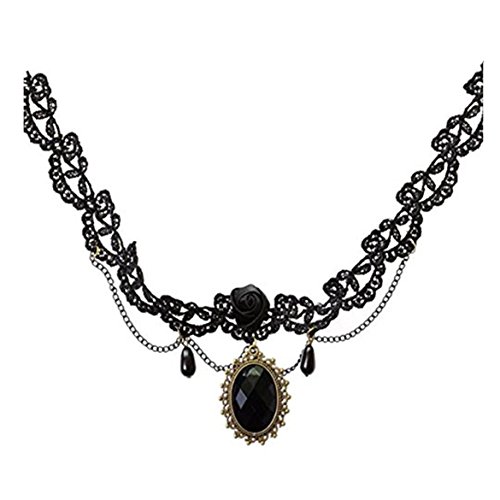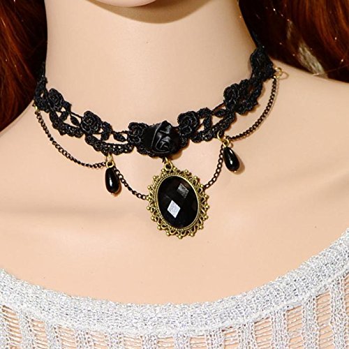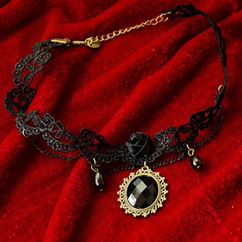 -. Title : Susenstone Woman Black Rose Lace Gemstone Collar Choker Pendant Necklace