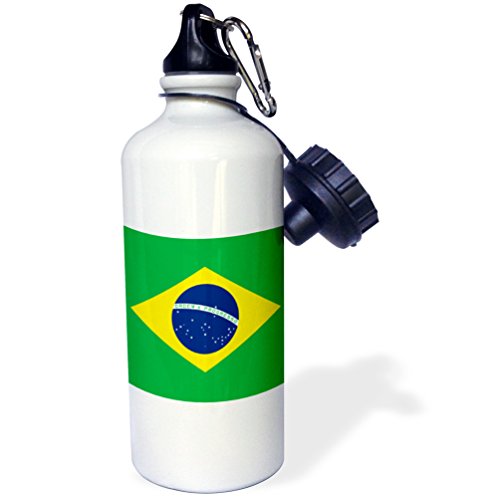 3dRose wb_157837_1 Flag of Brazil-Bandeira Do Brasil-Brazilian Green Yellow Rhombus with Dark Blue Circle 27 Stars Sports Water Bottle, 21 oz, White