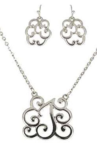 -. Feature : Initial Monogram Silver-tone Necklace Set with Earrings / Necklace Length 16" with Extender 3.5" / Earring Length 1.25" / Wrapped with tissues in a gift box / Each piece is carefully crafted to perfection