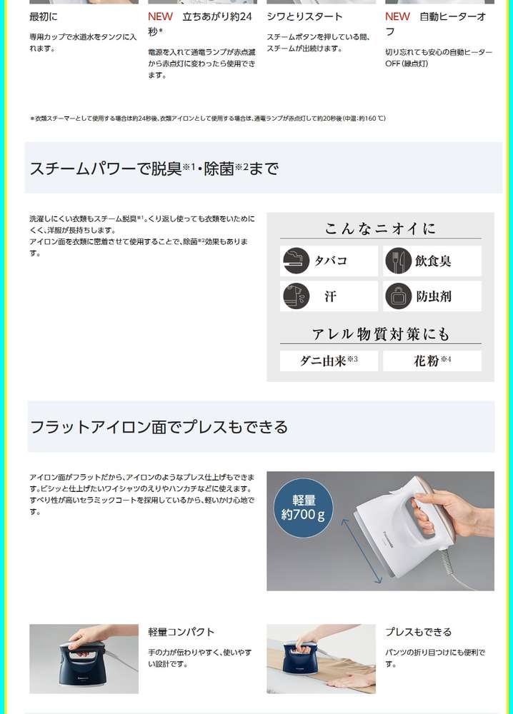 ●(*脱臭効果は、スチームをあてる時間、臭気・繊維の種類によって異なります。