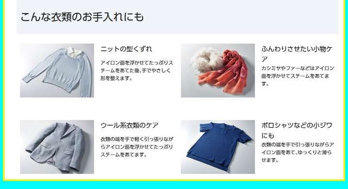 ●アイロン面を衣類に密着させて使用することで、除菌効果もあります。