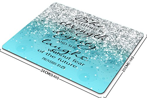 Smooffly Proverbs 31:25 Mouse Pad,Bible Verse Blue Sparkles Glitter Pattern Mouse Pad