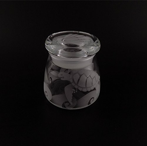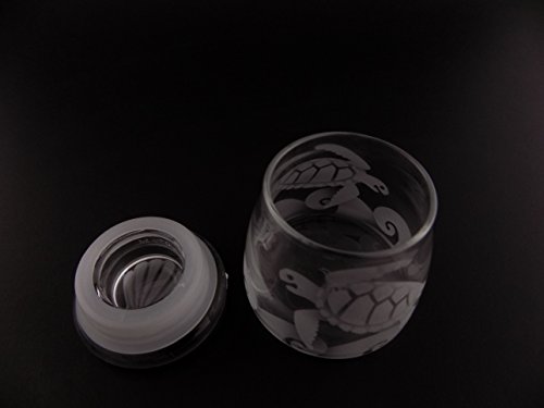 Hand Etched Vibe Storage Jar Sandblasted (Sand Carved) Glass Handmade USA Custom (4.5 Ounce (133ml), Sea Turtles Waves)