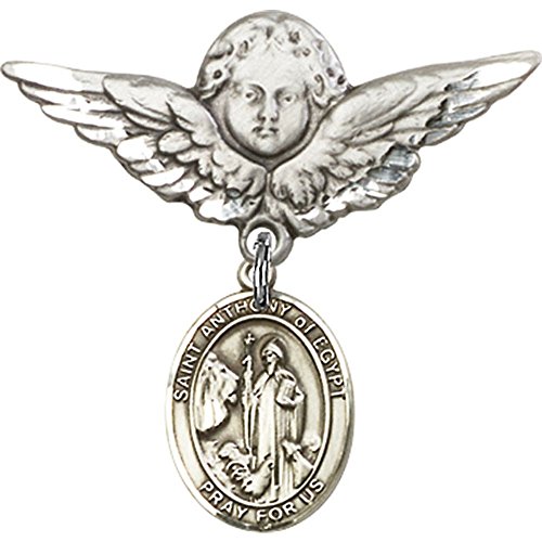 -. Title : Sterling Silver Baby Badge with St. Anthony of Egypt Charm and Angel w/Wings Badge Pin 1 1/8 X 1 1/8 inches