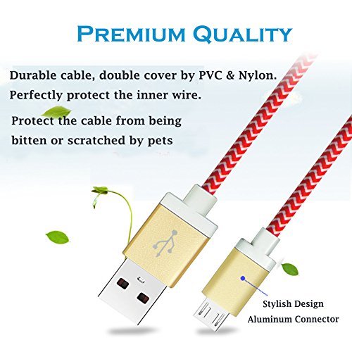 Micro USB Charger(6ft), 3 Pack Magic-T High Charging Speed USB 2.0 A Male to Micro Nylon Braided Cords with Aluminum Connectors for Andriod,Samsung and more(Red,Yellow,Purple,Black)