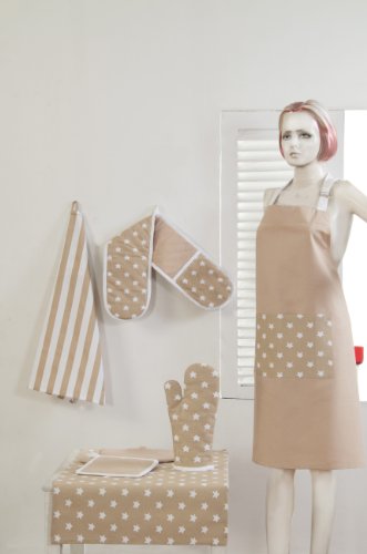 -. Title : Küchentextilien " Stars", reine Baumwolle, Farbe: Beige, Weiß. Küchenbedarf. Waschbares Küchenprogramm.