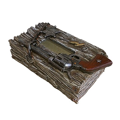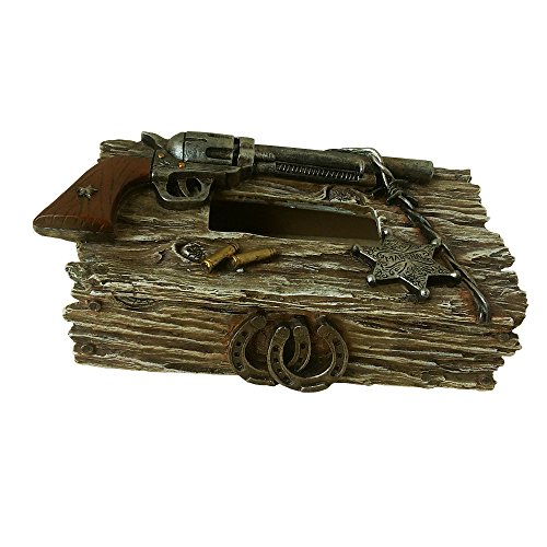 - Wood imitated handgun and horseshoe patterned tissue box. It is solid and heavy. The pattern is done in very good details - an ideal gift for people who like cowboys.