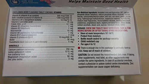 Helps support the immune system, maintain bone health, dental health and eyesight, and contains antioxidants that support good health A complete kids multivitamin available in a chewable dye-free Lemon-Berry tablet Lactose-free and gluten-free