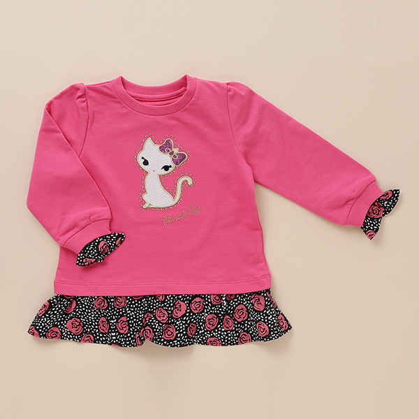 상품설명 핫핑크 컬러에 플라워 프린트 원단이 배색으로 들어간 롱 맨투맨 티셔츠 입니다. 소매와 밑단에 플라워 후레아 장식으로 들어가 여성스럽게 레이어드 됩니다. 다이마루 원단으로 만들어져 착용감도 편안합니다. 화이트 고양이 포인트로 귀여운 느낌을 더해주었습니다. 데님 아이템이나 레깅스, 기본 팬츠 아이템에 어울리는 아이템입니다.