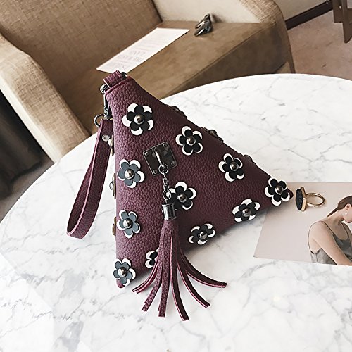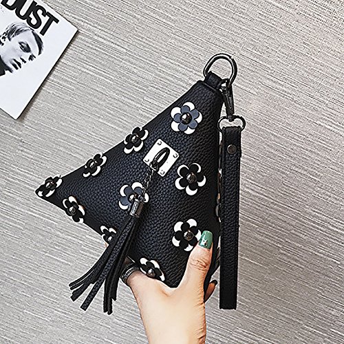 -. Feature : [SIZE INFORMATION] Style 1 Triangle bag-5.91"L x 5.91"W x 5.91"H. Style 2 Triangle bag-13.3"L x 13.3"W x 9.8"H. Clutches-7.6"L x 0.19"W x 5.3"H. Hand strap length-11.02". The second style top-handle bags can includs ipad mini2 or magazine size of A4. / [MATERIAL&CARE INSTRUCTIONS] Fabric: high-quality PU leather. Hand Strap: Polyester. Keep it in a dry, cool and ventilated place, avoid exposure to chemicals, spikes and hot place, clean it with dry soft cloth when got stains. / [ITEM SPECIFICS] This unique triangle clutch looks like a pyramid, and it is super cool and stylish. Triangle design with tassel and zip closure. Look small, but space is capacious. It can store your important belongings well, holding your phone, lipstick and other small essentials and suits for many occasions, including wedding party, prom, cooktail, fashion show, ceremony, shopping or dinner etc. It arounds your arms as a clutch or a wallet with the removable wrist strap. / [BRAND SPECIFICATION] All QZUnique products are offered under registered trademark and only sold by global best discount. We do not authorize any other sellers to sell our products on Amazon. We can not guarantee products quality of other sellers. / [DELIVERY TIME] It weight is almost 0.38 kg. All orders fulfilled by Amazon will be two-day shipping (Ship from USA), fulfilled by [Global Best Discount] with [standard shipping] are free shipping, and it usually only takes 5 to 10 business days to arrive, much sooner than the estimated delivery time.