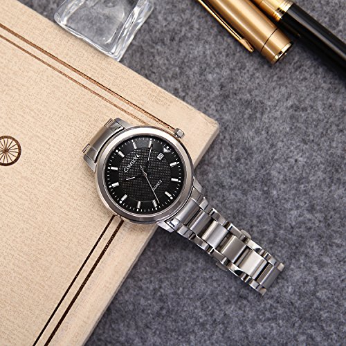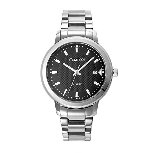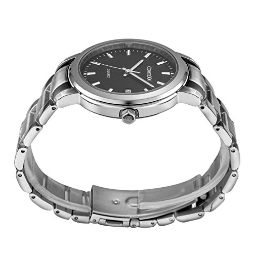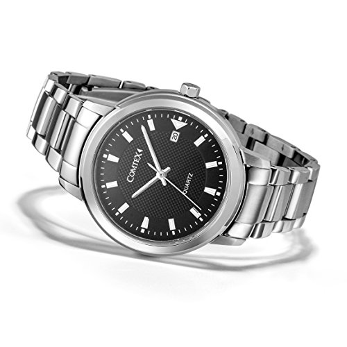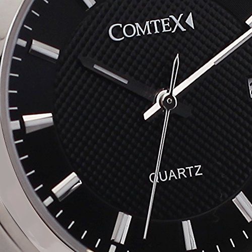 Comtex 손목시계 맨즈 스테인레스 손목시계 캘린더 아날로그 쿼츠 시계 블랙