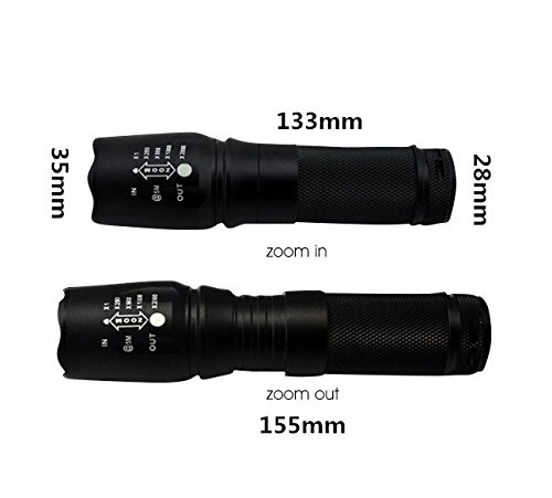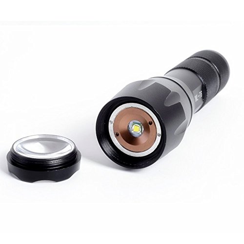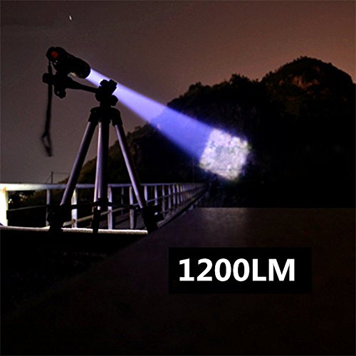 -. Feature : 1.Output bright can come to 1200 lumens (MAX) / 2.Telescopic focusing design, adjust the size of the light spot for far and near distance according to the environment , far and near distance / 3.Skid-proof and water resistant design, best suitable for Outdoor Hiking, Climbing, Cycling, et / 4.Power by: 1 X 18650 OR 3 X AAA battery(Battery included) / 5.The product adopts aviation aluminum alloy and CNC material, has good waterproof performance