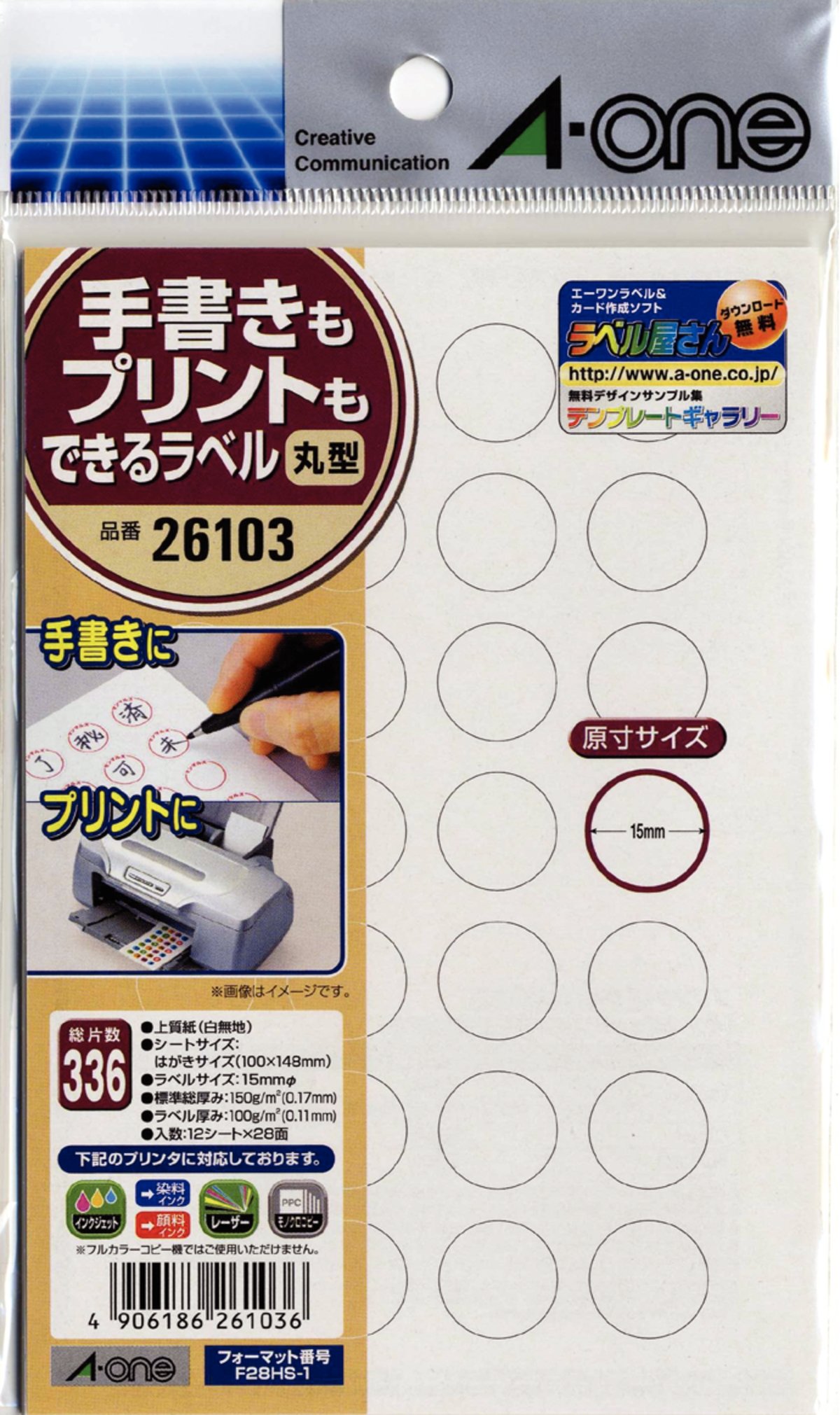(A-one) also print handwriting-One also can be 15mm 12 sheet label postcard size round face 28 (336 pieces) 26103 (japan import)