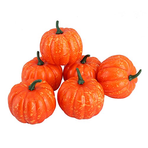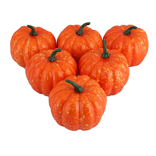 6MILES Set of 6 Yellow Artificial Lifelike Realistic Fall Harvest Fake Fruit Simulation Pumpkins for Wedding Halloween Thanksgiving Home Kitchen Decoration