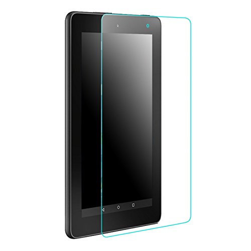 -. Feature : High strength scratch resistance, 8-9H Hardness, much higher than ordinary 3H hardness / Anti-glare, ultra clear screen protector, specially designed to fit the Kindle Fire 7 / Anti-fingerP.R.Int oleophobic coating, prevents grease and smudging / 0.5 mm film protects your device while allowing full use of your tablet's touch screen / Package Contents: 1x Tempered Glass Screen Protector, 1x Cleaning Cloth, 1x Dust Absorber, 1x Cleaning Towelette