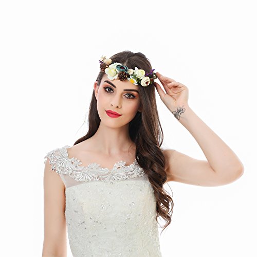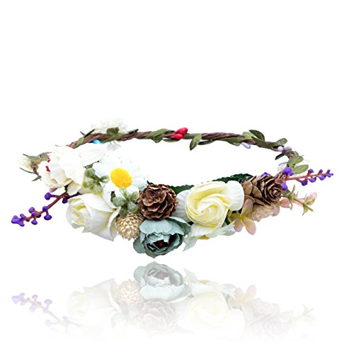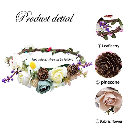 - 【MATERIAL】- Beautiful Handmade boho Fall/ Autumn Flower crown headband made from the finest faux flowers,simulation vines,cute berry and exquisite pinecone.Excellent handmade materials and exquisite workmanship,make it looks very realistic.