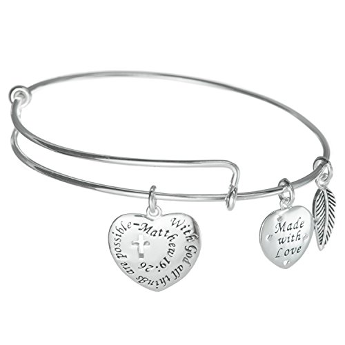 -. Title : 925 Sterling Silver Cross With God All Things Are Possible Heart Wing Charm Adjustable Bangle