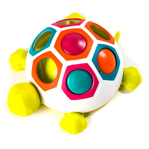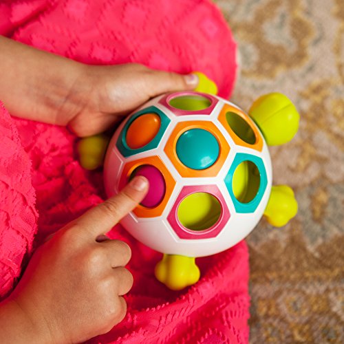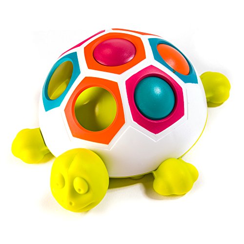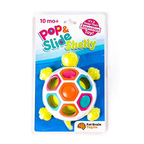 Studio : Fat Brain Toy Co. Publisher : Fat Brain Toy Co. Binding : Toy Product Description Slide, pop, and learn with this happy playtime turtle covering its shell are seven vibrant hexagons in four soothing colors while just beneath the surface are three buttons in teal, orange, and magenta. Push them and slide them from slot to slot and watch - little smiles erupt with delight as the buttons pop into place practice matching them with the slots by color. Or - just have fun enjoying the tactile delight of sliding and popping them from slot to slot. With the pop slide shelly, the early tactile learning excitement never stops pop slide shelly - tactile learning toy of sliding buttons to pop into slots - encourages sensory exploration, cause-effect learning, color learning - a vibrant activity for babies and parents to explore together - slots of shell alternate in color - teal, orange, magenta, green - press and slide buttons beneath slots - children smile with delight when buttons pop into place - practice color learning by matching buttons with matching-color slots - a great fidget toy for little exploring fingers, too - features rubber feet so turtle doesn't move around when you push the buttons - includes one pop slide shelly - high quality design and materials, built for lasting durability and safety. 0