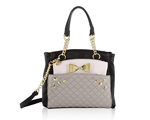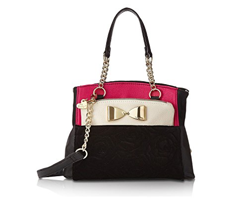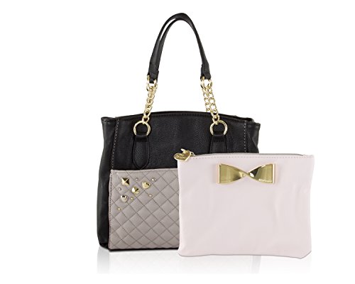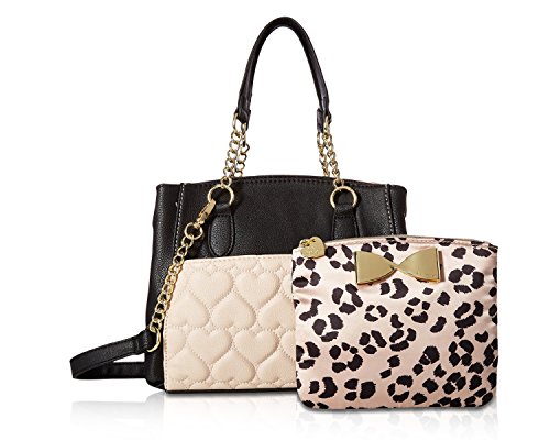 Two bags are better than one Betsey Johnson Medium Shopper Pouch Satchel Bag, Compact yet has plenty of space for everything and plenty of style for anything. Exterior Features Front slip pocket with contrast color zippered pouch that ensures stylish flair, snap top satchel ,Double Handles 6 Drop, Removable shoulder strap 23" Drop, Fully Lined Interior with center zip pocket, Wall zipper pocket and 2 Slip Pockets. This carryall offers versatility for an everyday wear and will keep you organized with separate zippered pouch to carry the essentials.Feature