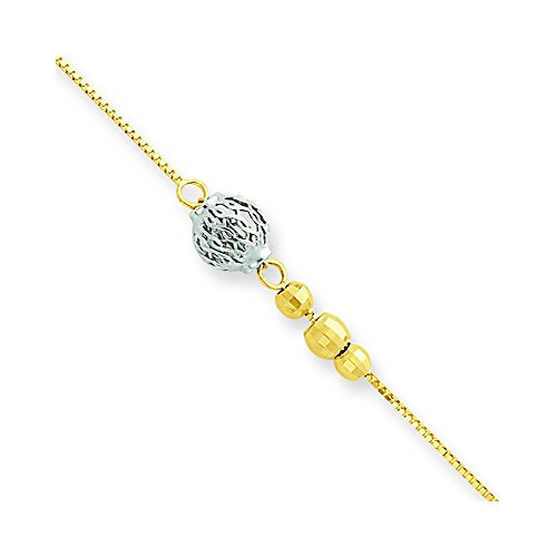 -. Title : 14k Two-Tone Bead With 9w/1in Ext Anklet