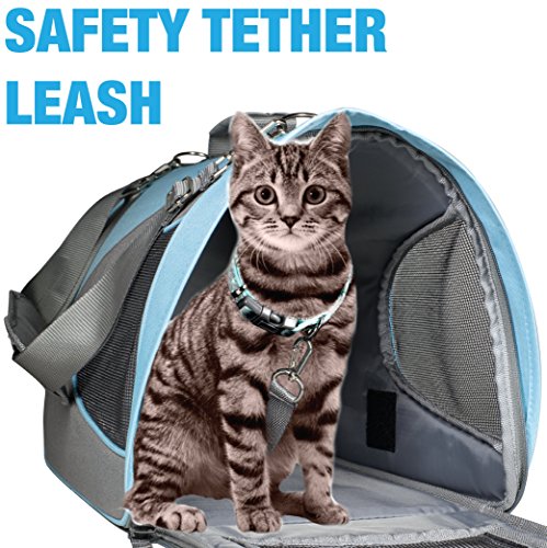 If you're worried that your pet might "make a dash for it" as soon as you open the carrier, there's a short leash attached to the inside of the case that you can clip to a collar. A mesh pouch on the outside gives you a place to store a leash, a bag of treats, or other travel necessities. 0 |